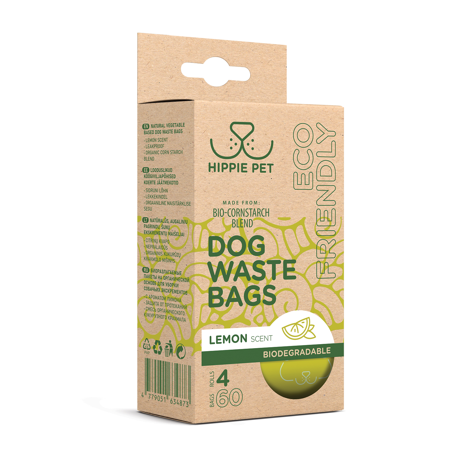 HIPPIE PET Biodegradable waste bags for dogs, 4x15 pcs. lemon scent