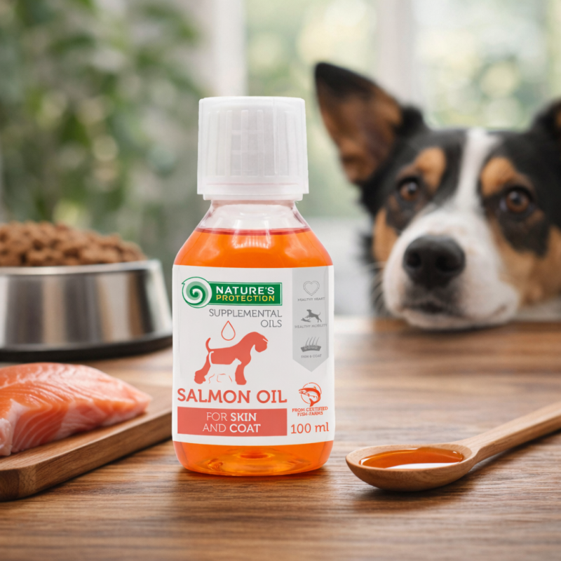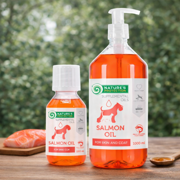 Nature’s Protection 100% Salmon Oil is a simple and natural way to supplement your pet’s daily diet with essential fatty acids and support overall well-being.