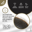 The Tauro Pro Line Massage Brush is a premium grooming tool designed by professionals to simplify pet brushing. Its ergonomic design ensures it is lightweight, preventing hand fatigue during brushing sessions. This is the largest brush in the range, specifically designed for medium and large breeds or pets with a high volume of coat. Thanks to its special shape, the brush will comb through even the densest coats. The special STOP technology prevents the teeth from getting stuck inside the cushion, while the oval tooth head effectively massages the pet's skin, improving blood circulation. The special anti-static coating on the brush prevents hair from becoming electrified, resulting in smoother and shinier coats. Discover the Tauro Pro Line brushes, crafted by professionals using top-quality materials to ensure optimal results and an enjoyable brushing experience.