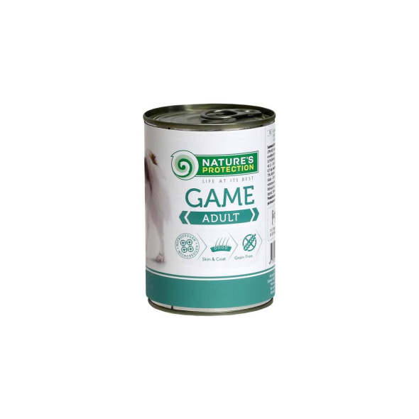 Nature’s Protection canned pet food for adult dogs with game is a premium, super-nutritious meal specially crafted to meet the dietary needs of adult dogs. The product features high-quality game meat as its primary protein source, providing excellent nutrition and taste. Gently cooked to preserve the natural aroma and nutrients, this canned food ensures your dog receives a flavorful, highly digestible meal that promotes optimal health. It serves as an ideal complement to Nature’s Protection dry dog food, enhancing the overall nutritional profile of your pet’s diet.