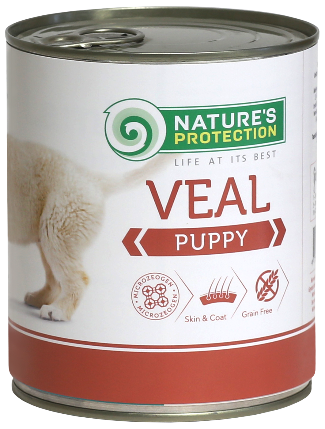 Nature's Protection canned food is enriched with natural supplements like MicroZeoGen, which helps to remove toxins from the body while supporting a healthy immune system. It’s conveniently packaged in ready-to-serve portions, making it the perfect choice for home feeding, travel, or even exhibitions. Give your growing dog a delicious, nutritious meal with Nature’s Protection veal canned food.