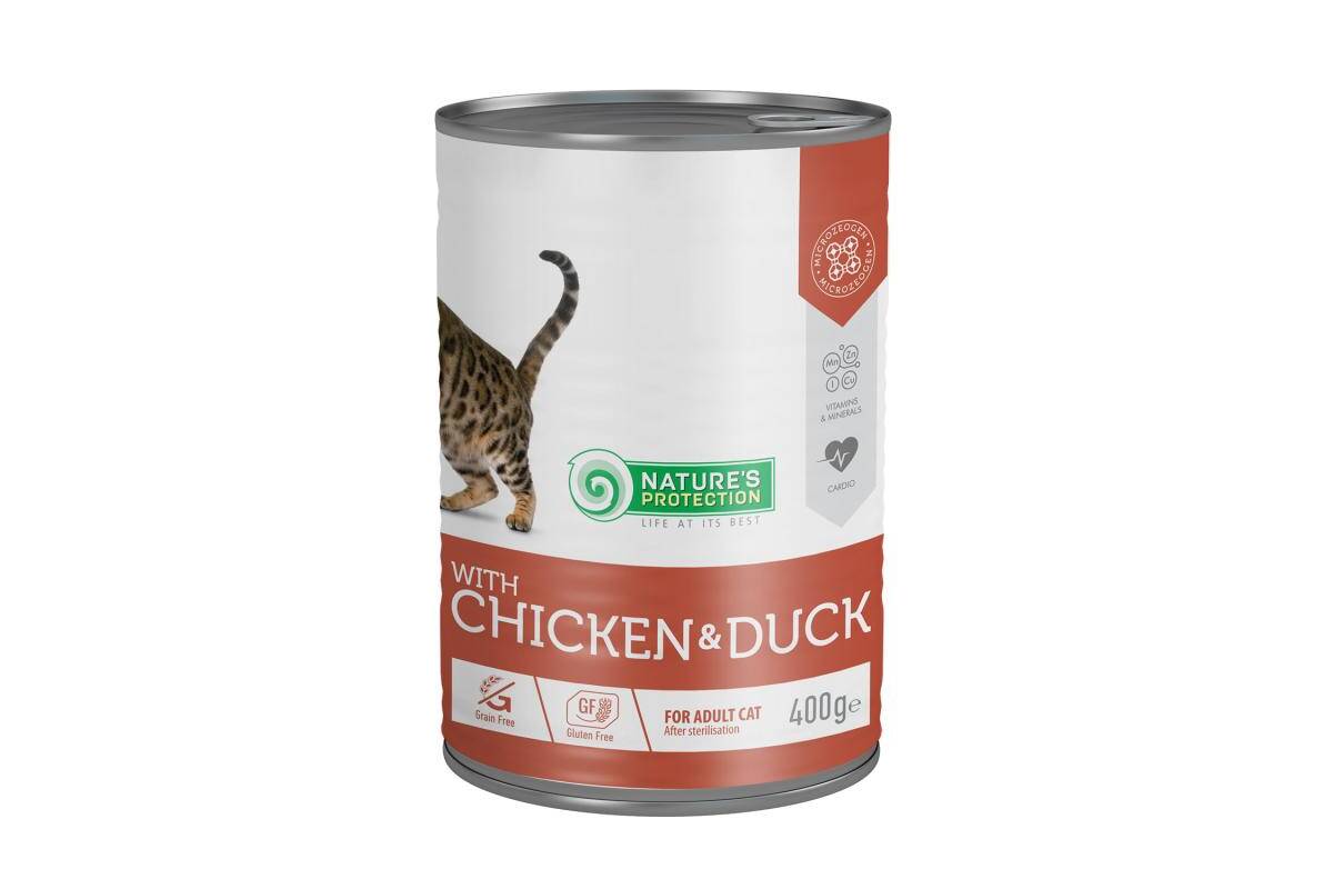 NATURE'S PROTECTION canned pet food for sterilised adult cats with chicken and duck 400 g