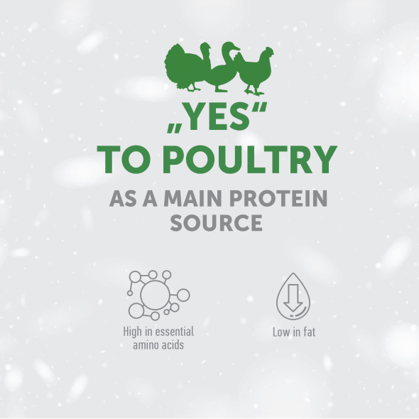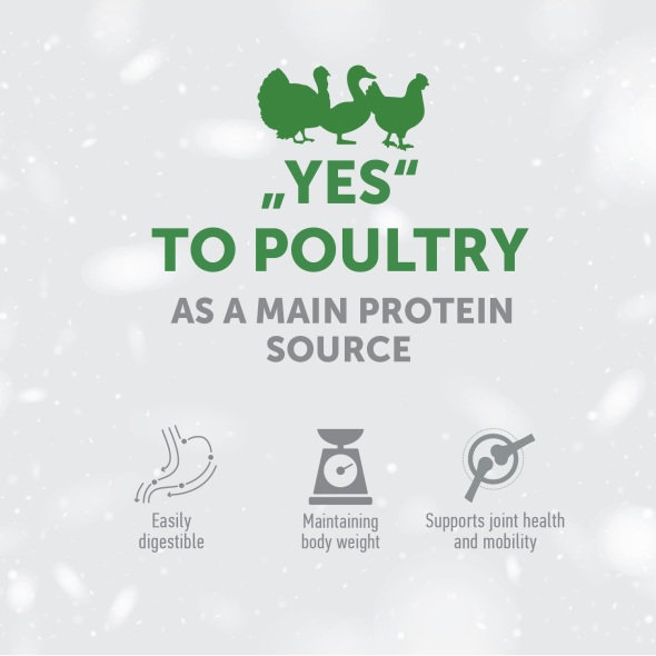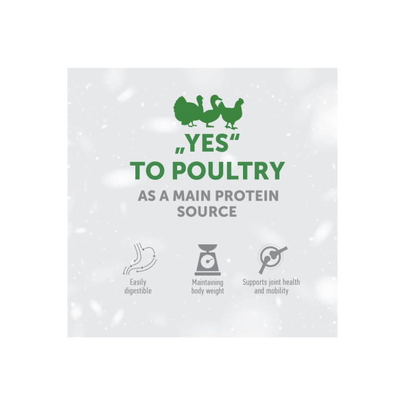 Composition: poultry meat 40 % (dried and finely ground), rice, maize, maize gluten, poultry fat, sugar beet pulp, seaweed Ascophyllum nodosum, cellulose (1,5 %), brewer's yeast, linseed, dynamic micronized clinoptilolite (1 %), sodium polyphosphate, fish meal, dried eggs, mannan-oligosaccharides (MOS), chicory extract, mojave yucca, marigold meal, cranberry dried (0,05 %).