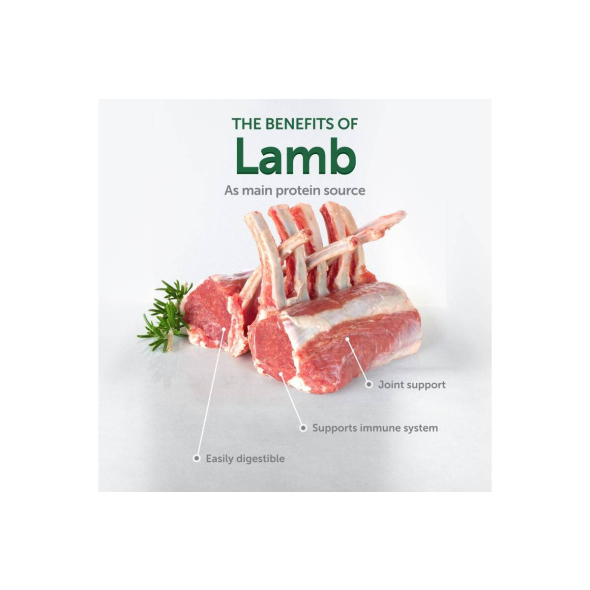 - Lamb as the main protein source: hypoallergenic, easily digestible.