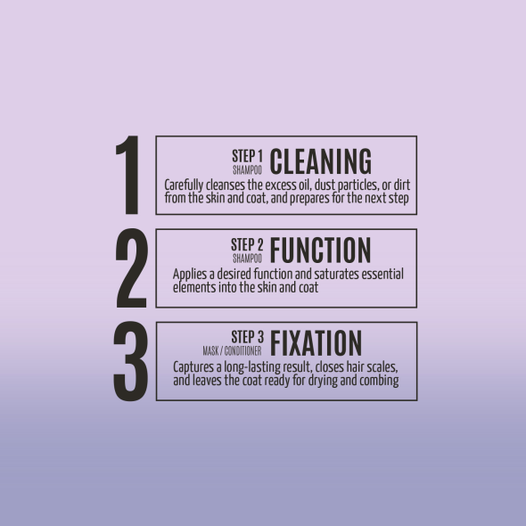 Perfect care of your pet's coat and skin consists of a three-step system