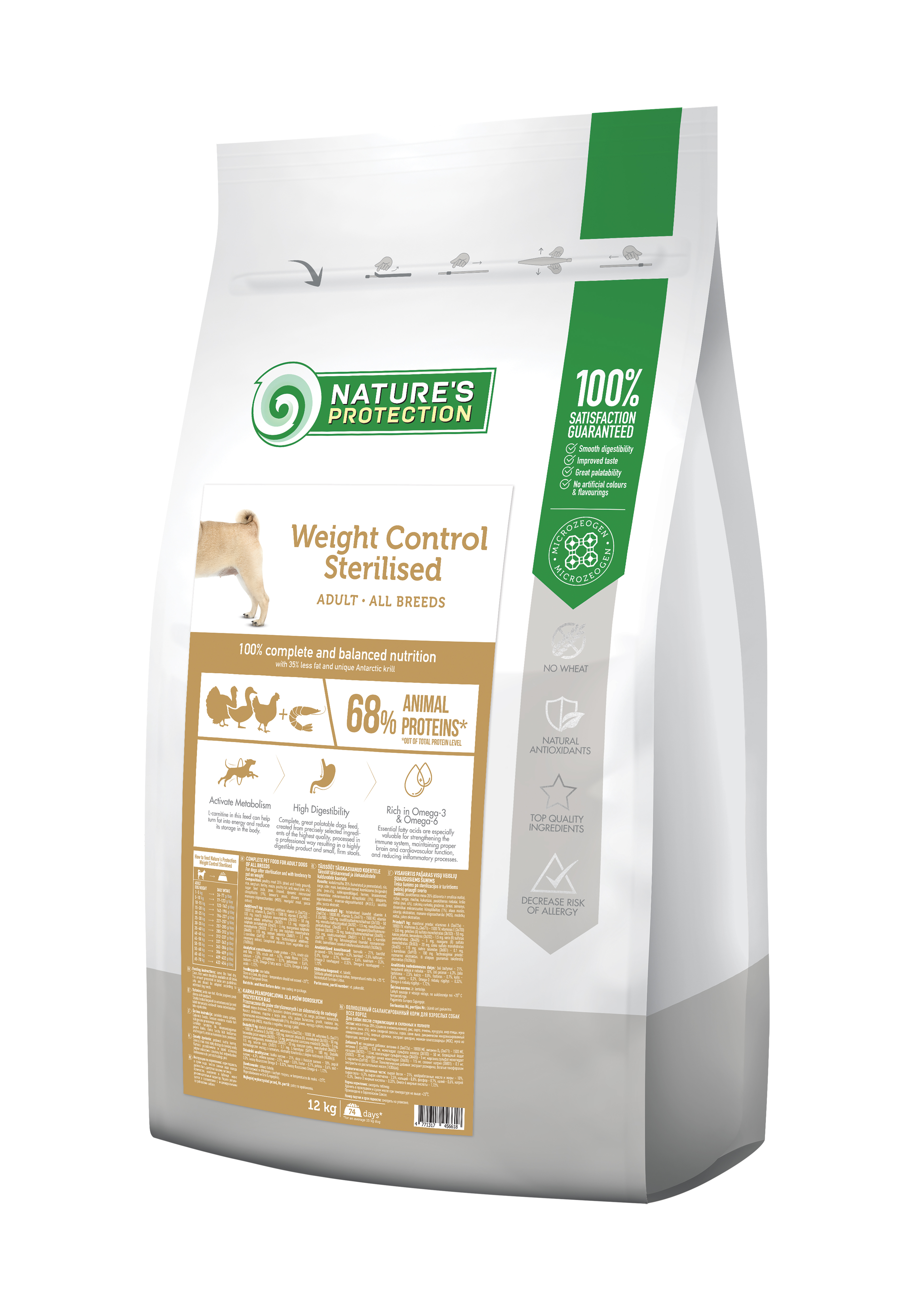 NATURE'S PROTECTION dry food for adult dogs of all breeds for weight control after sterilization, with poultry and krill 12 kg