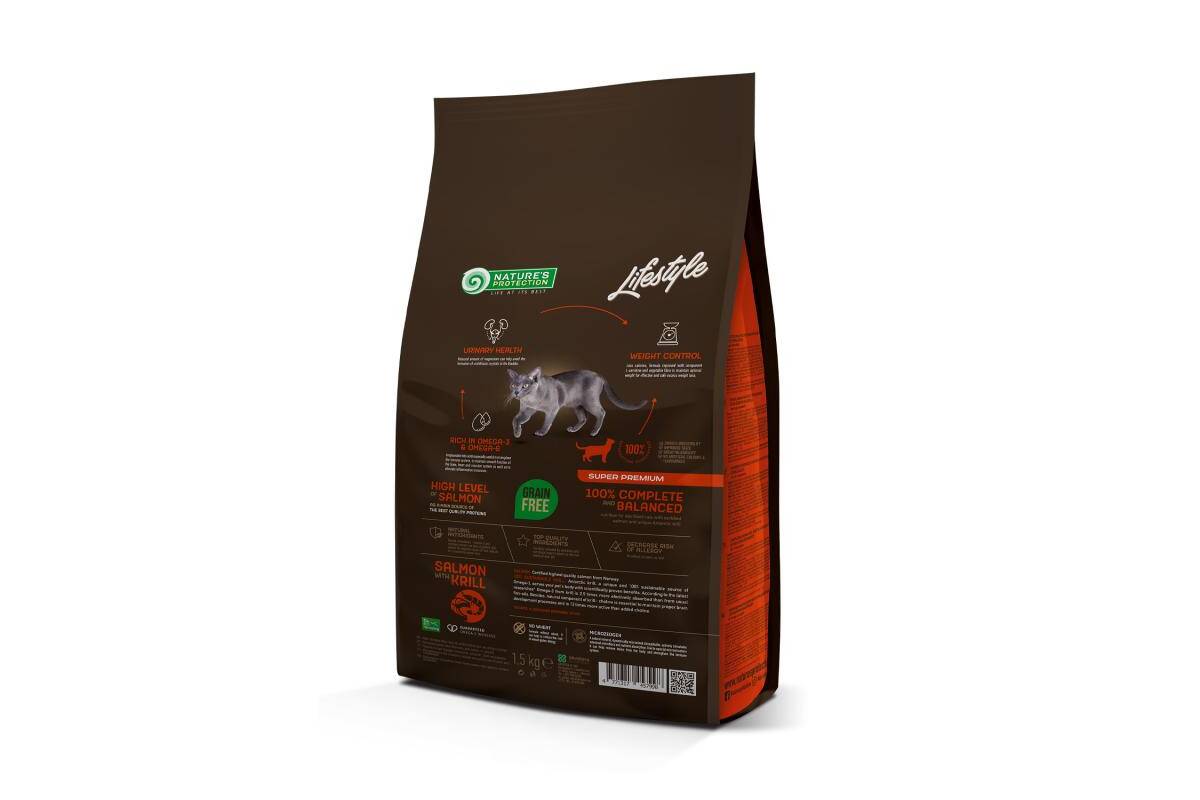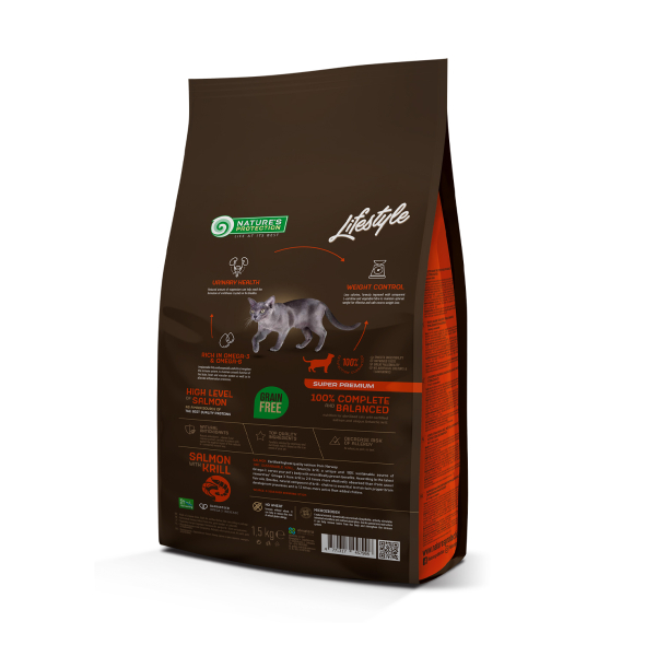 NATURE'S PROTECTION LIFESTYLE dry grain free food for adult cats with salmon and krill after sterilisation 1.5 kg