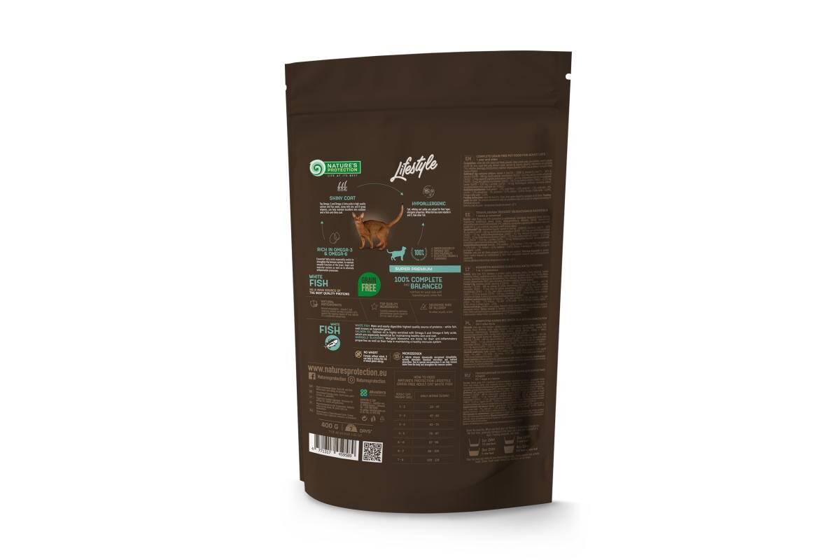 NATURE'S PROTECTION LIFESTYLE dry grain free food for adult cats with white fish 400 g