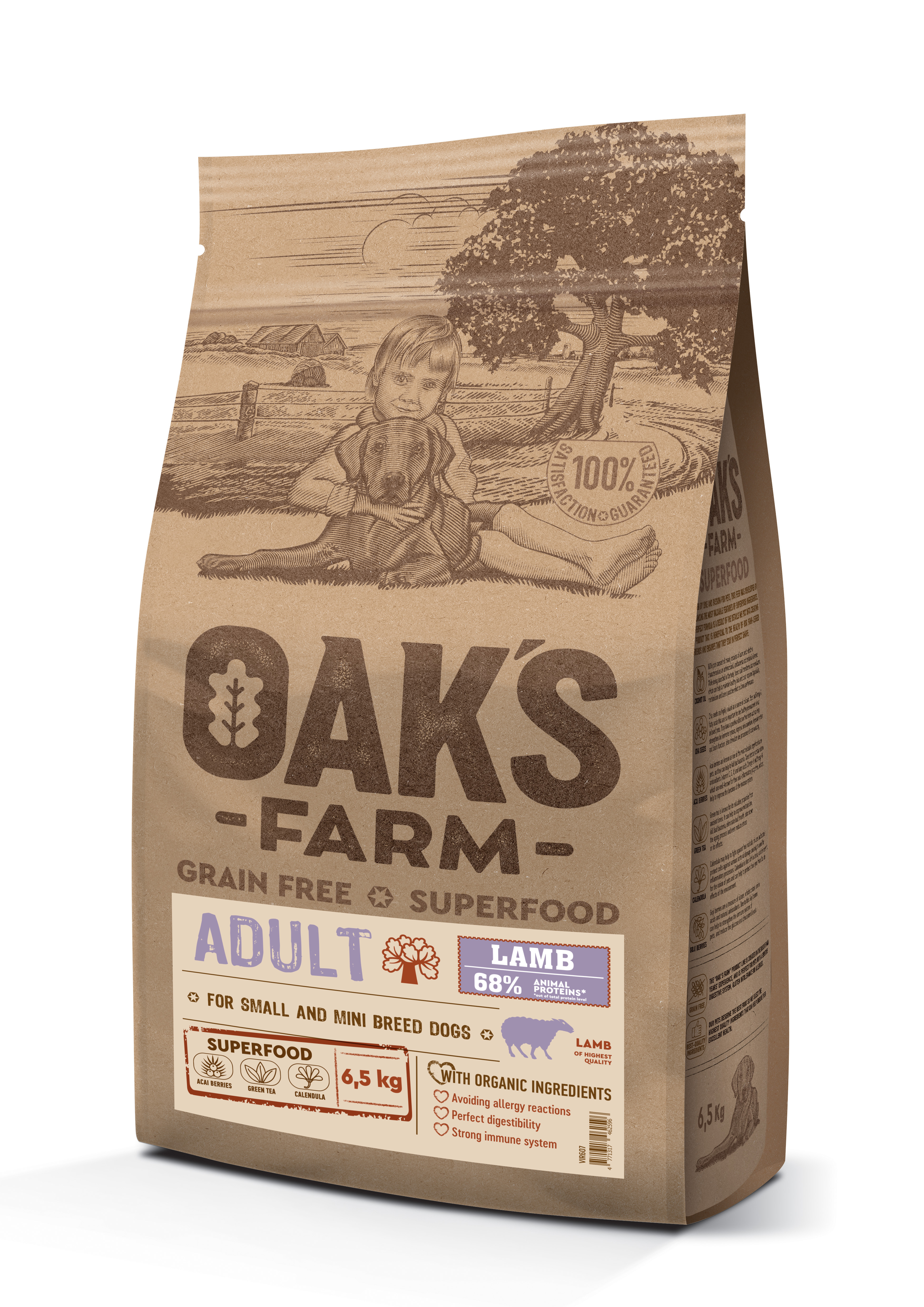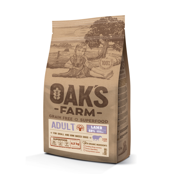 - OAK'S FARM dry grain free food for adult, small and mini breed dogs with lamb 6.5 kg