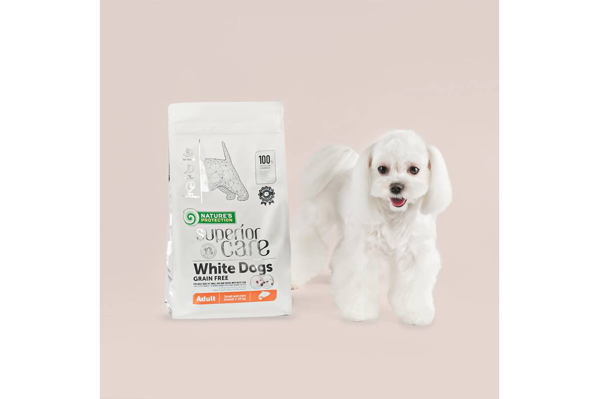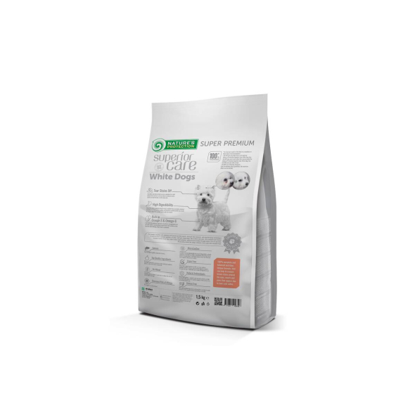 Nature‘s Protection Superior Care White Dogs Grain Free with Salmon for Adult Small and Mini Breeds is known for its well-balanced composition and raw materials which help to fight against brown tears stains and to keep healthy skin and coat. The main source of protein in this complete dry dog food is salmon, a hypoallergenic, rich in omega acidsingredient. The complete and balanced composition of this dry dog food is enriched with clinoptilolite of volcanic originfrom nature - MicroZeoGen. It helps to remove toxins from the pet's body and when it is detoxified the efficient nutrients, vitamins, and minerals easily absorb into the body. The composition is fortifield with Omega -3 and Omega - 6 fatty acids, essential for maintaining healthy skin and a shiny coat. As well as mono- and polyunsaturated fatty acids that supports immune system while saturated fatty acids provides energy to a dog.