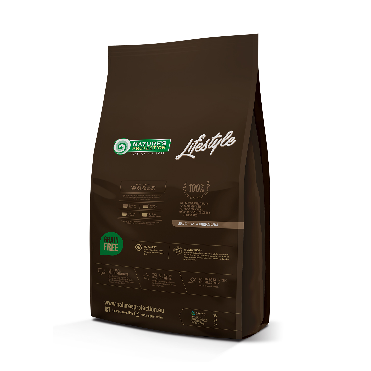 Nature's Protection Lifestyle – Super Premium dry food line is known for innovative ingredients and the newest technologies in healthy pet nutrition. This complete grain free dry food contains only the highest quality ingredients and protein sources. This product line is for active pets for whom is needed a sufficient amount of energy.