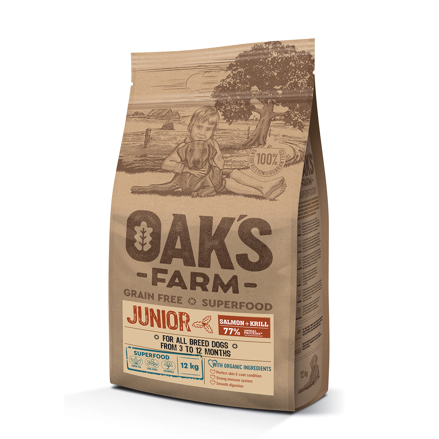 - OAK'S FARM dry grain free food for junior dogs of all breeds with salmon and krill 2 kg