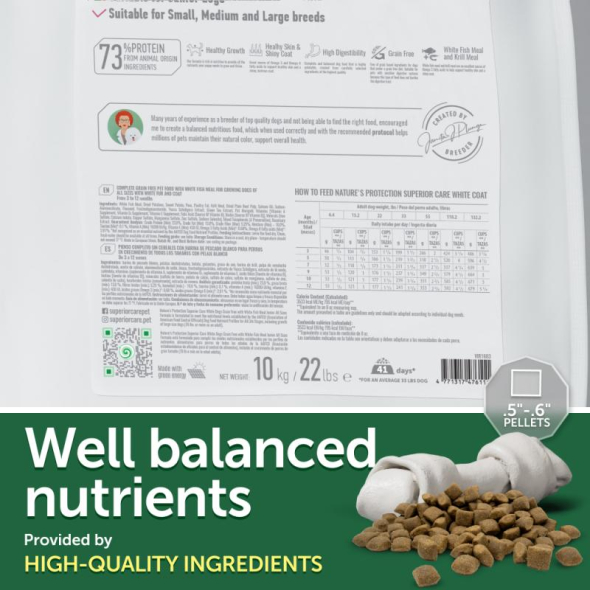 NATURE'S PROTECTION SUPERIOR CARE dry grain free pet food with white fish for growing dogs of all sizes with white coat 4 kg