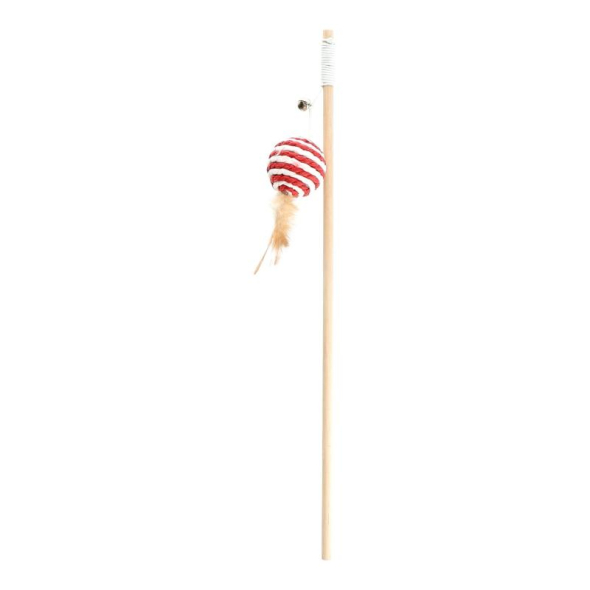 HIPPIE PET toy for cat fishing rod, with a feather and a ball, 40 cm dark red