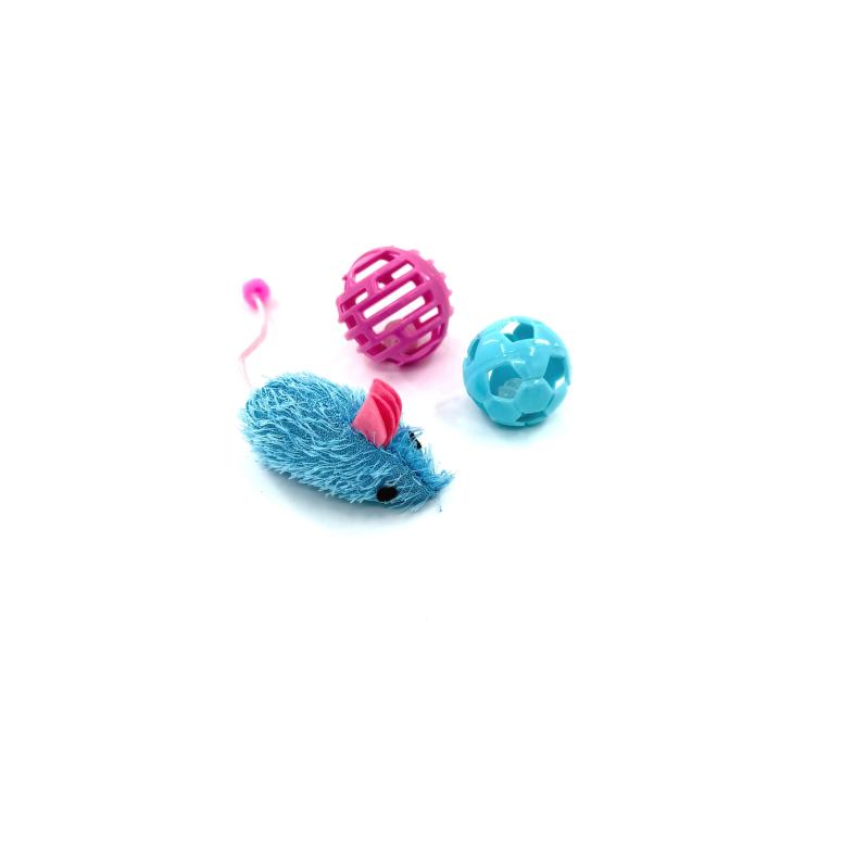 HIPPIE PET toy for cat, mouse with balls, 3 pcs. blue/pink