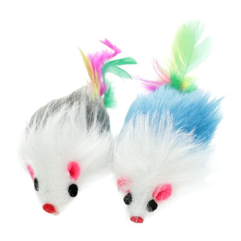 HIPPIE PET toy for cat, mouses with a feather, multicolored, 2 pcs. 9 cm