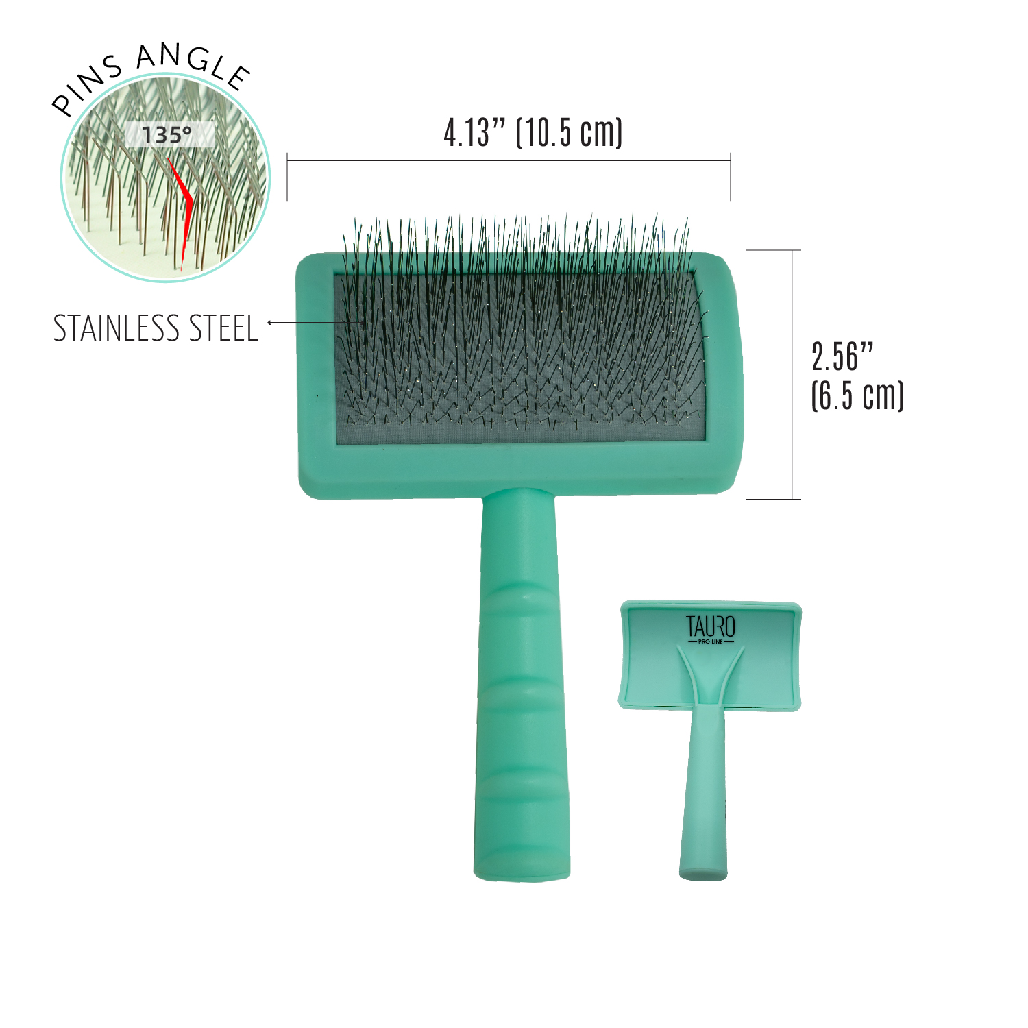 The Tauro Pro Line premium brush is expertly designed to make pet brushing easier. Its ergonomic design ensures it is lightweight, preventing hand fatigue during brushing sessions. The soft and elastic cushion adapts to your pet's skin, while the 20 mm long curved stainless steel teeth effectively comb through the coat, remove dead hair and tangles, and provide a gentle massage to improve circulation and promote hair growth. With this Tauro Pro Line brush, you can easily reach even hard-to-reach areas: armpits, muzzle, ears, and paws. Suitable for all coat types and compatible with small, medium, and large breeds. The special anti-static coating on the brush prevents hair from becoming electrified, resulting in smoother and shinier coats. Discover the Tauro Pro Line brushes, crafted by professionals using top-quality materials to ensure optimal results and an enjoyable brushing experience.
