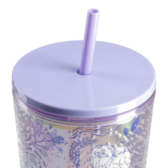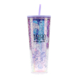 TAURO PRO LINE plastic mug with lid and straw, unique design, pink with purple details 750 ml