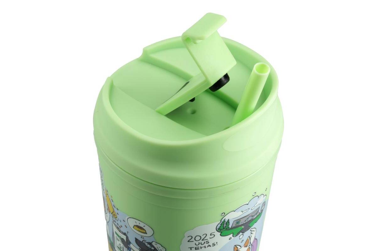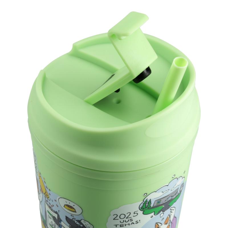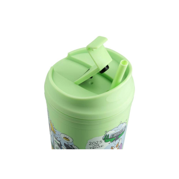KIKA plastic water bottle with illustrations, green color, with straw 710 ml