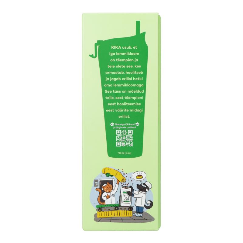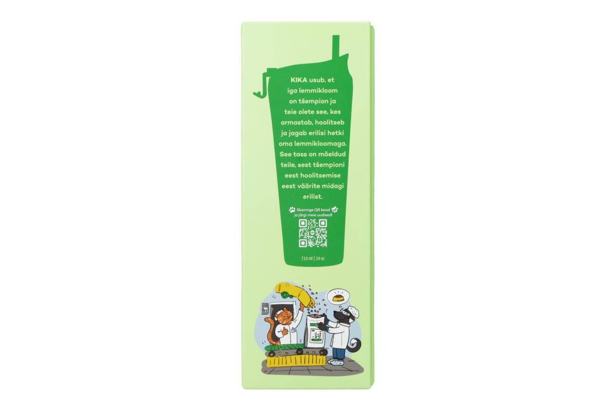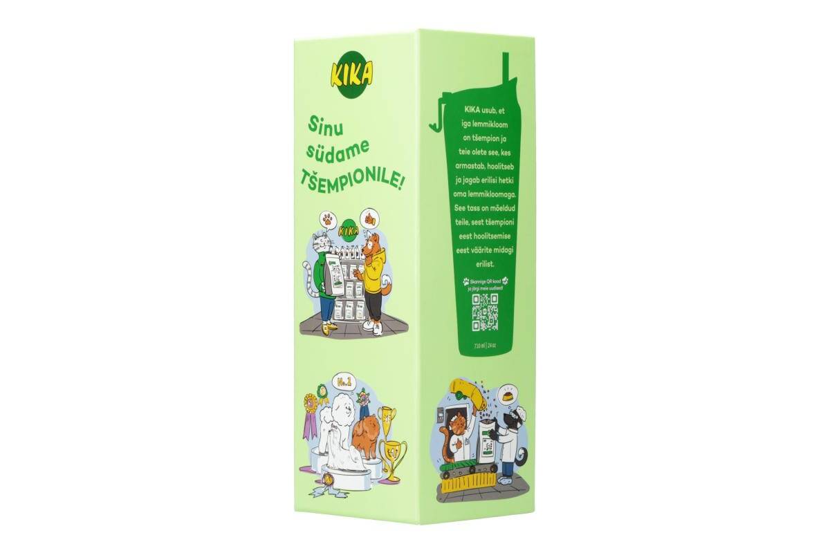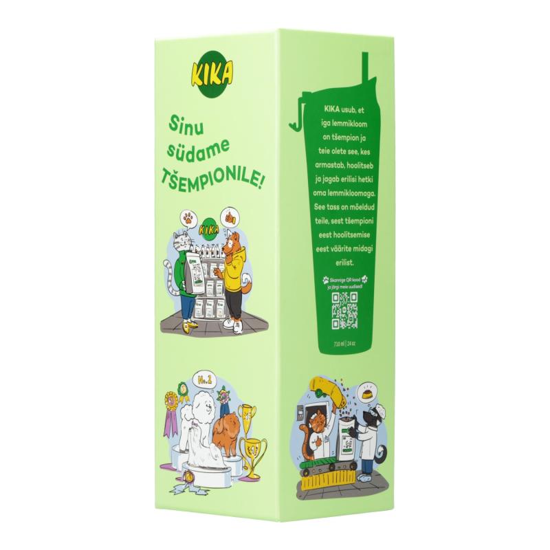 The bottle’s design symbolizes the seamless connection between these services, ensuring pets receive the best care, and their owners experience ultimate convenience. The KIKA slogan, "For the Champion of Your Heart!", highlights the passion and dedication behind every product and service, reinforcing that both pets and owners deserve the best.