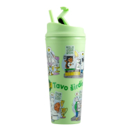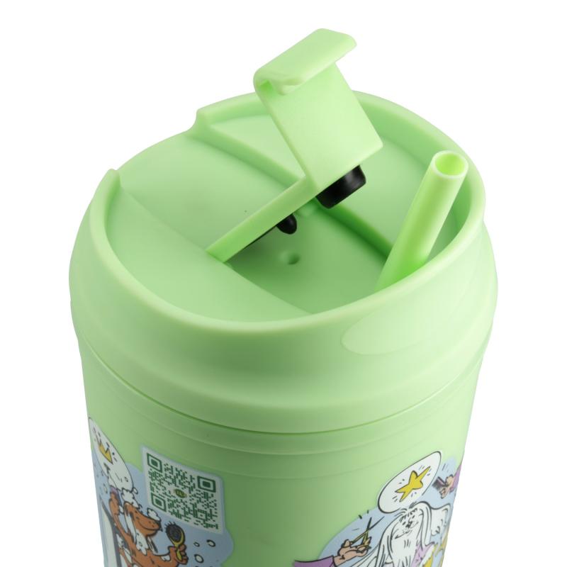 KIKA plastic water bottle with illustrations, green color, with straw 710 ml