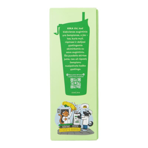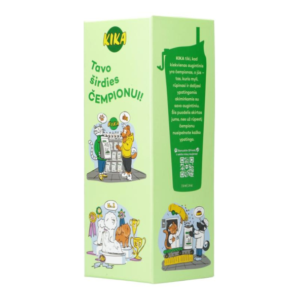 The bottle’s design symbolizes the seamless connection between these services, ensuring pets receive the best care, and their owners experience ultimate convenience. The KIKA slogan, "For the Champion of Your Heart!", highlights the passion and dedication behind every product and service, reinforcing that both pets and owners deserve the best.