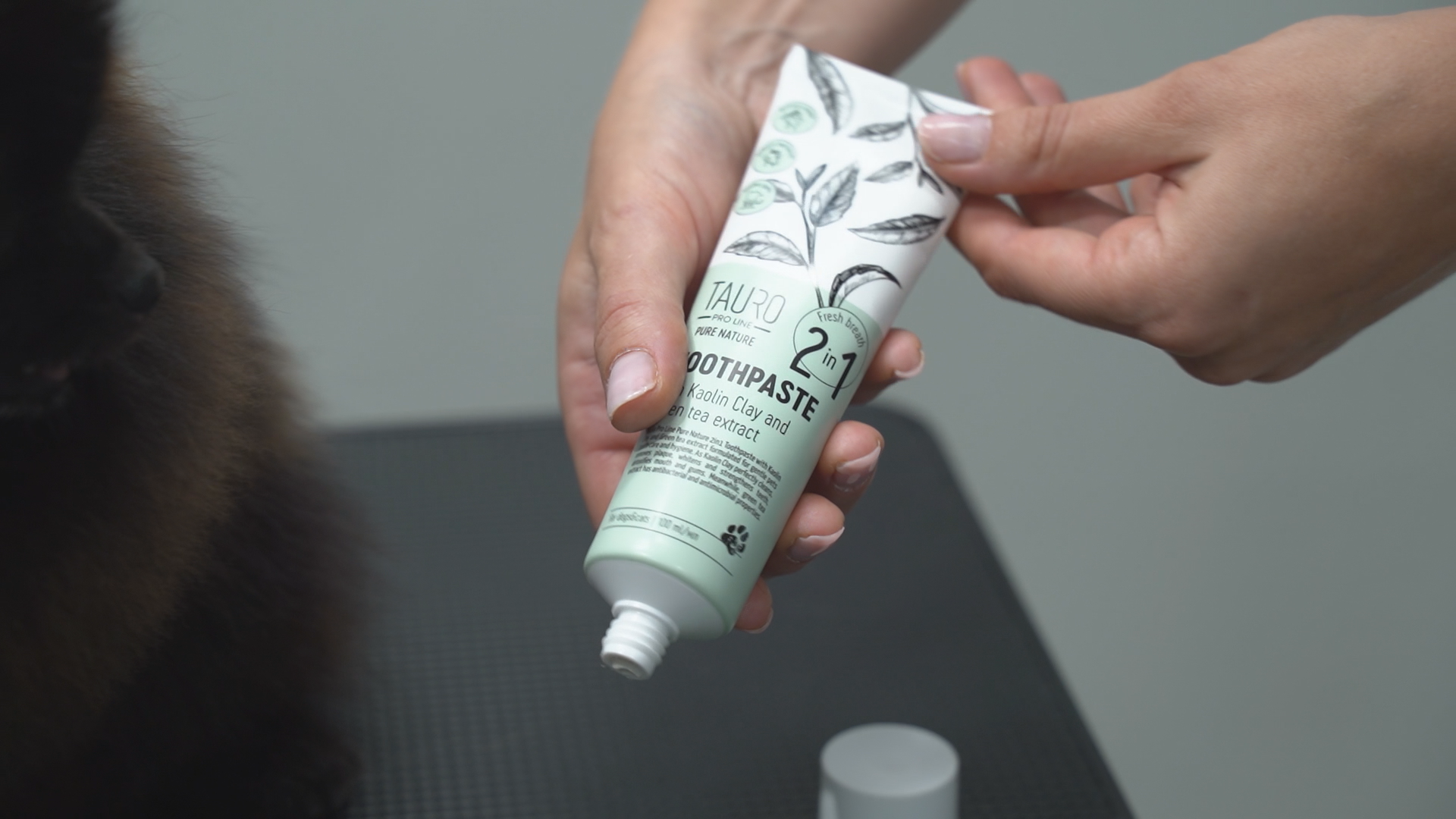 Tauro Pro Line Pure Nature 2in1 Toothpaste with Kaolin Clay and Green tea extract formulated for gentle pets teeth care and hygiene. As Kaolin Clay perfectly cleans, removes plaque, whitens and strengthens teeth, detoxifies mouth and gums. Meanwhile, green tea extract has antibacterial and antimicrobial properties.
