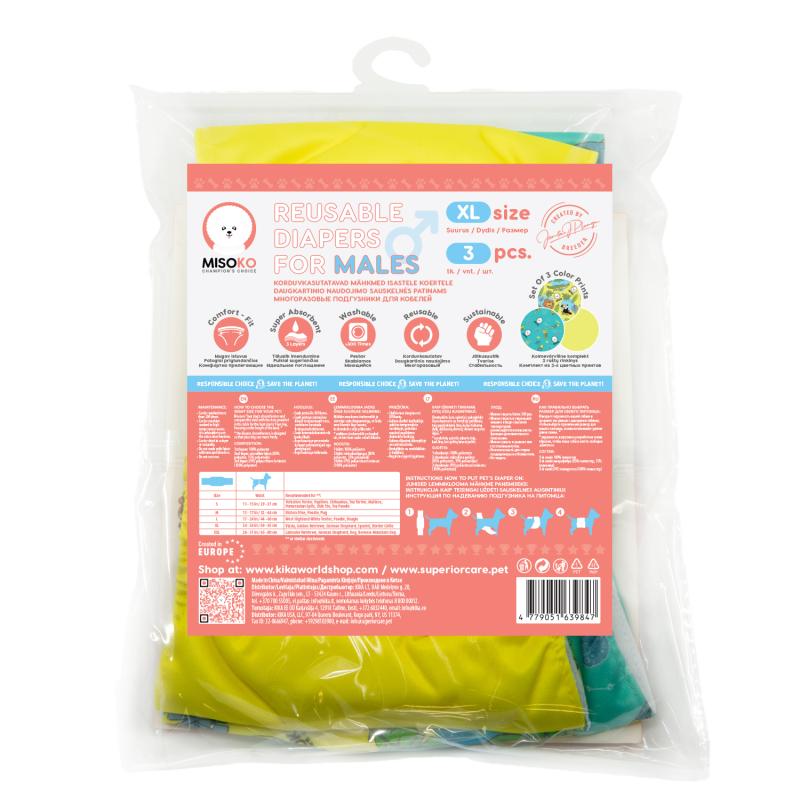 MISOKO reusable diaper set for male dogs, Holidays size XL