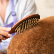 The Tauro Pro Line Prestige Collection Pearwood Brush is a premium grooming tool designed by professionals to simplify pet brushing. Its ergonomic design ensures it is lightweight, preventing hand fatigue during brushing sessions. This brush is perfectly suitable for young pets to get them used to their coat brushing procedure, specifically designed for pets with sensitive skin. The special STOP technology prevents the pins from getting stuck inside the cushion, while the oval pin head effectively massages the pet's skin, improving blood circulation. The special anti-static coating on the brush prevents hair from becoming static, resulting in smoother and shinier coats. Discover the Tauro Pro Line brushes, crafted by professionals using top-quality materials to ensure optimal results and an enjoyable brushing experience.