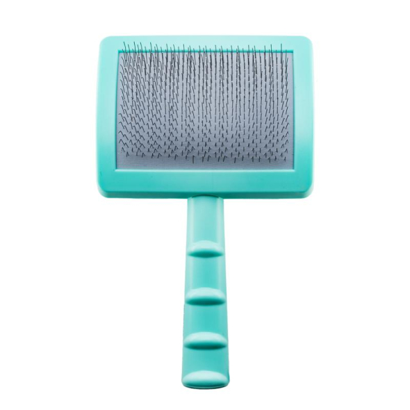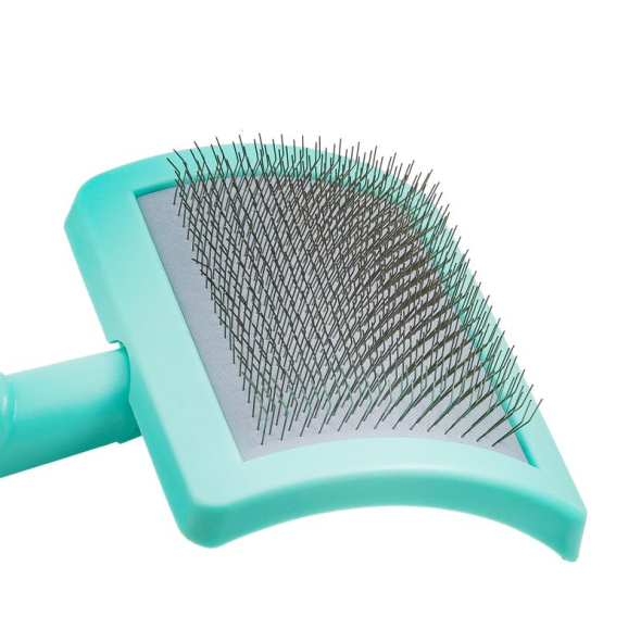 The brush pins are durable and hard, with a curvature angle that prevents scratching of the pet's skin and makes the brushed coat soft and fluffy. Moreover, superior pins are designed to move easily and detangle coats without hair breakage.