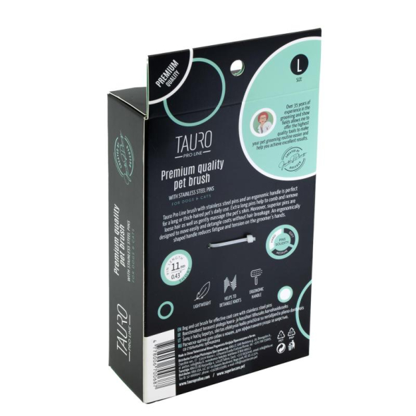 The Tauro Pro Line curved brush can be used by both professional pet groomers and owners who respect their pet's skin and coat.
