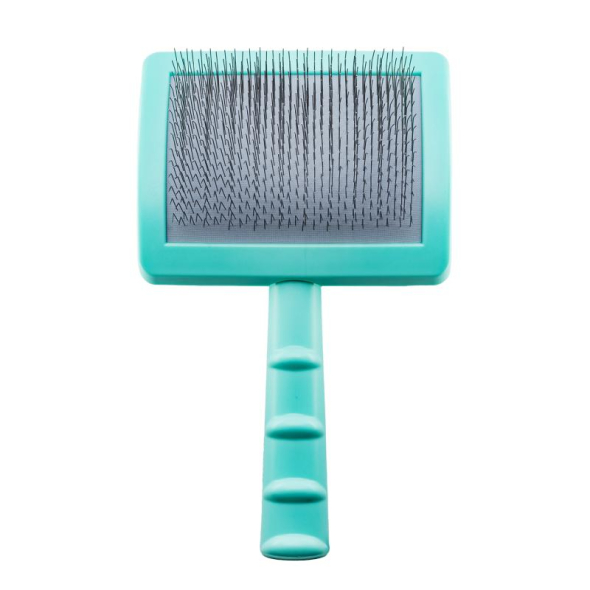 The brush pins are durable and hard, with a curvature angle that prevents scratching of the pet's skin and makes the brushed coat soft and fluffy. Moreover, superior pins are designed to move easily and detangle coats without hair breakage.