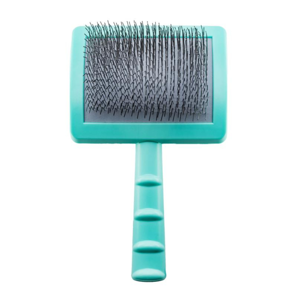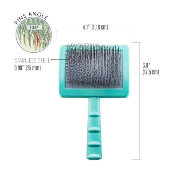The brush pins are durable and hard, with a curvature angle that prevents scratching of the pet's skin and makes the brushed coat soft and fluffy. Moreover, superior pins are designed to move easily and detangle coats without hair breakage.