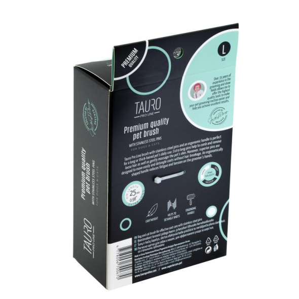 The Tauro Pro Line curved brush can be used by both professional pet groomers and owners who respect their pet's skin and coat.
