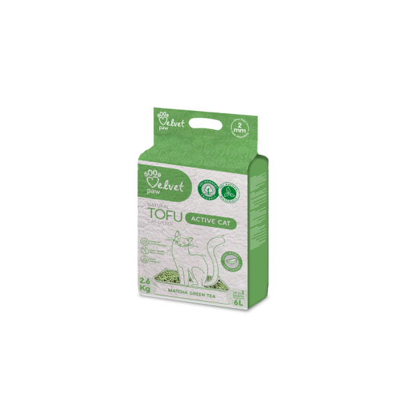 VELVET PAW TOFU litter for active cat, with matcha green tea essence 2 mm granule, 2.6 kg / 6 l