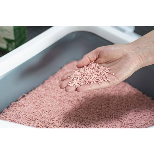 - With peach essence: The litter is enriched with peach essence, imparting a pleasant and long-lasting aroma to the litter. Gentle on paws Made from natural materials that are gentle on your cat's sensitive paws.
