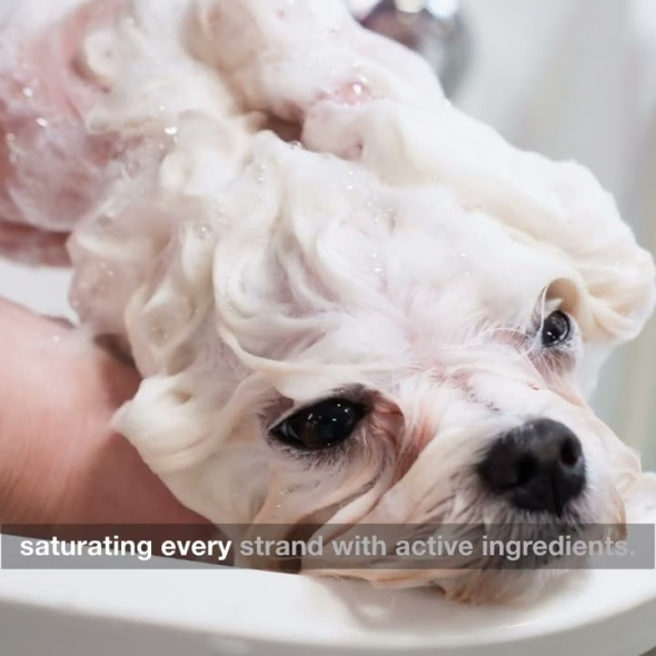 The shampoo is specifically designed for dogs and cats with white or light coats. It removes yellow spots carefully and without damaging skin and fur, and enhances white colour naturally. The mild, naturally formulated product works efficiently and does not irritate the pet's skin while helping to maintain the optimal pH balance of the skin.