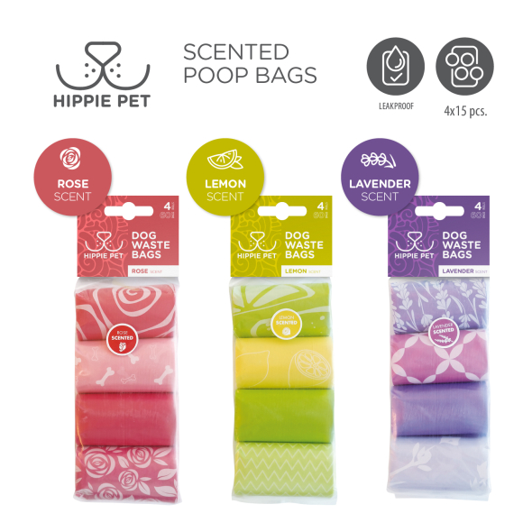 HIPPIE PET Waste bags for dogs, 4x15 pcs. lemon scent
