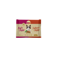 The set includes two complete wet foods: salmon & chicken, and beef & chicken – supporting skin, coat, digestive, and immune system health. Suitable even for picky cats.