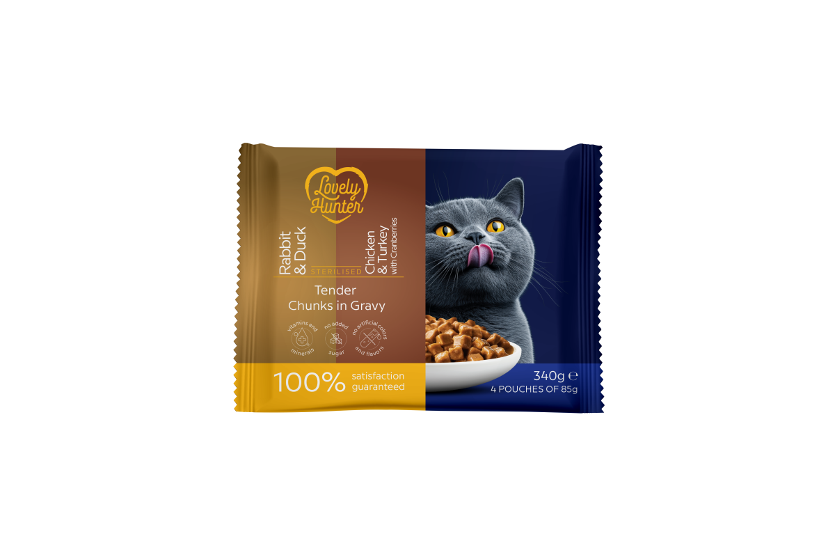 THE TASTE THAT CATS CHOOSE. The diet of sterilized cats requires a special balance – fewer calories, more attention to the urinary system and overall health. Lovely Hunter wet food for sterilized cats is specially formulated to care for the well-being of sterilized cats every day.