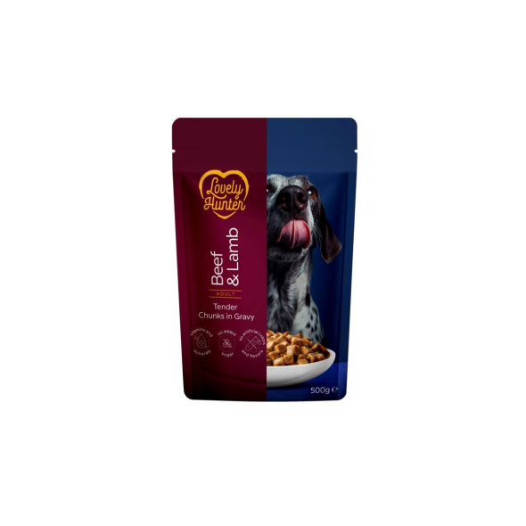 LOVELY HUNTER wet pet food with beef and lamb for adult dogs of all breeds 500 g