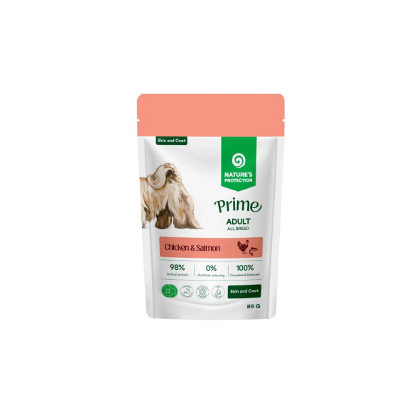 NATURE'S PROTECTION PRIME wet pet food with chicken and salmon for healthy skin and coat for adult dogs of all breeds 85 g
