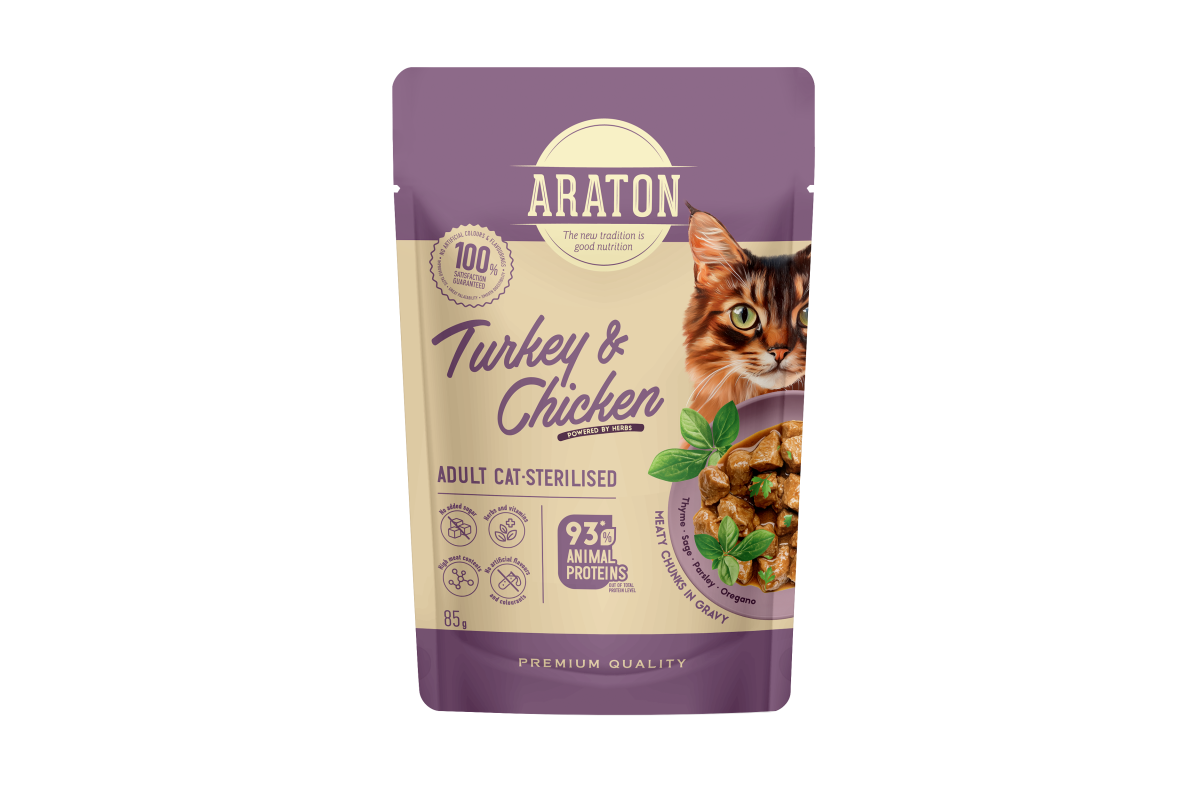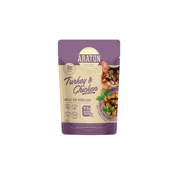 ARATON wet pet food with turkey and chicken for sterilised adult cats of all breeds 85 g